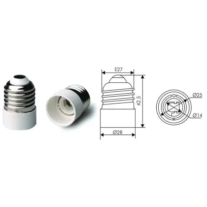Beschrijving Fitting Adapter voor Lamphouders E27 => E14 Wit