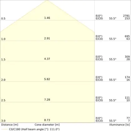De kleurtemperatuur van deze LED wandlamp is: 3000K - 4000K CCT.