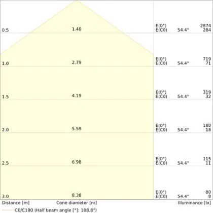 De lichtopbrengst (Lumen), geeft weer hoe krachtig het uitgestraalde licht is. Dit is belangrijk om te weten om de juiste sfeer te creëren. 0 tot 400 Lumen is bij uitstek geschikt voor accent- of sfeerverlichting. Een hoger aantal Lumen is, afhankelijk van de grootte van de ruimte, beter geschikt als ondersteunende- of basisverlichting. Heb je plafonds hoger dan 4 meter, dan is een lichtopbrengst van minimaal 8000lm aan te raden indien heldere verliching gewenst is (vb. in werkomgevingen).