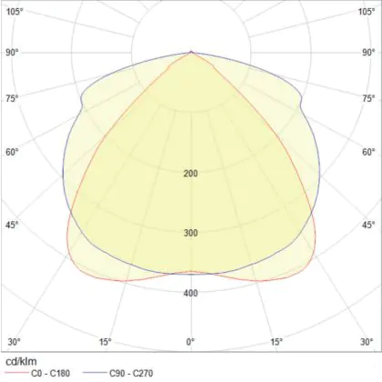 Deze Noxion NX-Line module schijnt een licht uit met een brede stralingshoek, of gradenbundel van 90° (WD90). Daarnaast heeft het een lichtopbrengst van 11200 Lumen waardoor het goed gebruikt kan worden in omgevingen met hoge plafonds.