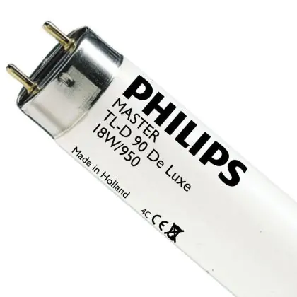 De lichtopbrengst van de Philips TL-D 90 De Luxe blijft gedurende de levensduur constant. Met een G13 lampvoet, is de Philips TL-D 90 De Luxe 18W 950 in veel verschillende armaturen te plaatsen.
