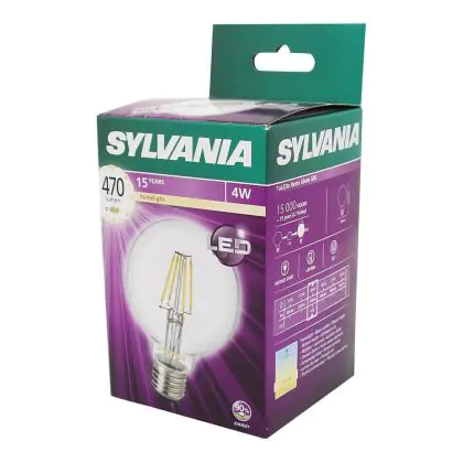Beschrijving Sylvania Retro ToLEDo E27 Globe 80mm Filament Helder 4W 470lm - 827 Zeer Warm Wit | Vervangt 40W
